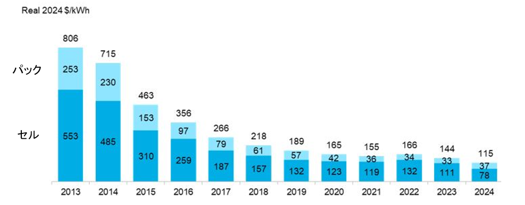 図1 蓄電池コストの低下(リチウムイオン)